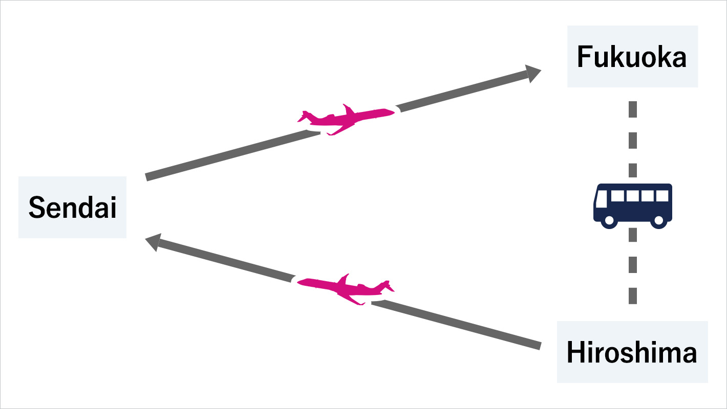 Outward journey : Sendai - Fukuoka - (Travel by car, train, etc.) - Hiroshima